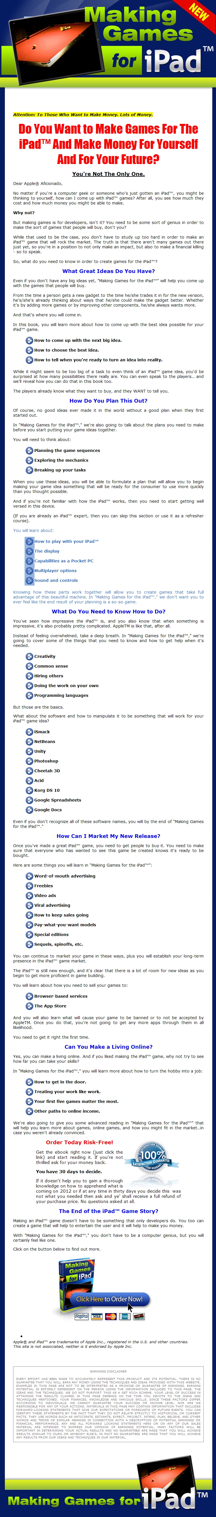 Do You Want to Make Games For The iPad™ And Make Money For Yourself And For Your Future?