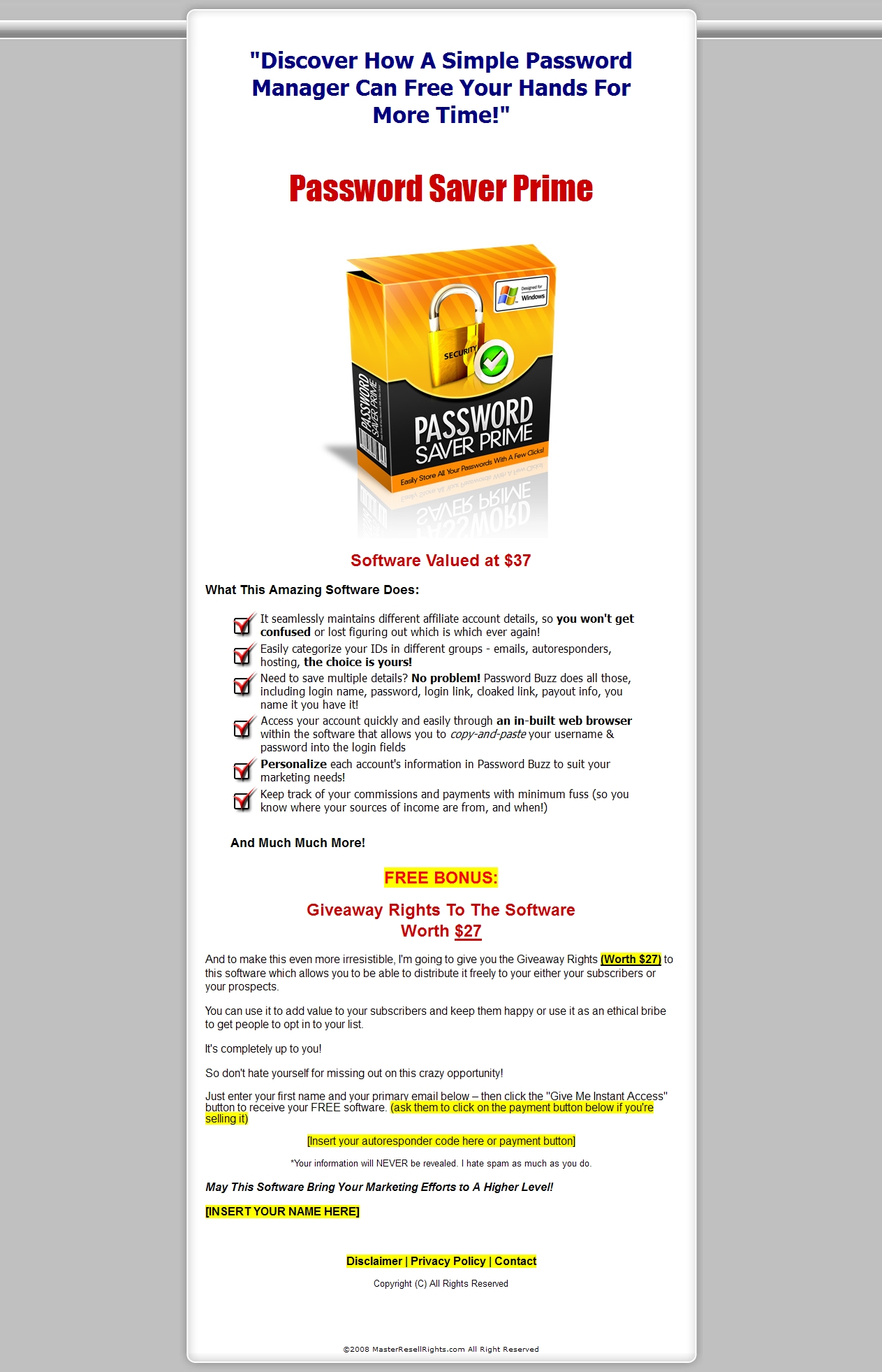 Need to save multiple details? No problem! Password Buzz does all those, including login name, password, login link, cloaked link, payout info, you name it you have it!