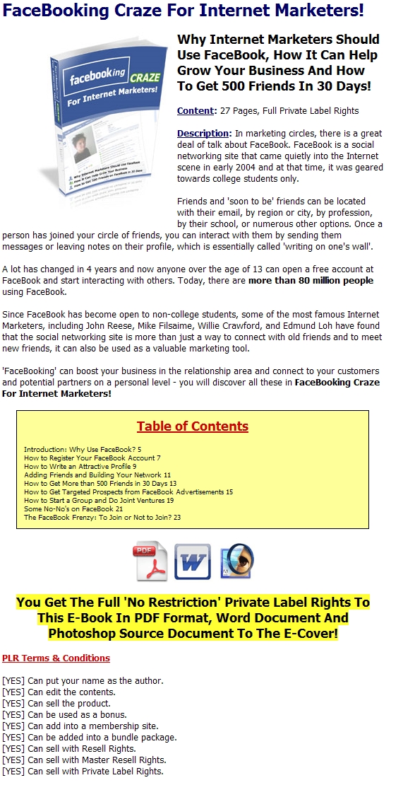 FaceBooking can boost your business in the relationship area and connect to your customers and potential partners on a personal level - you will discover all these in FaceBooking Craze For Internet Marketers!