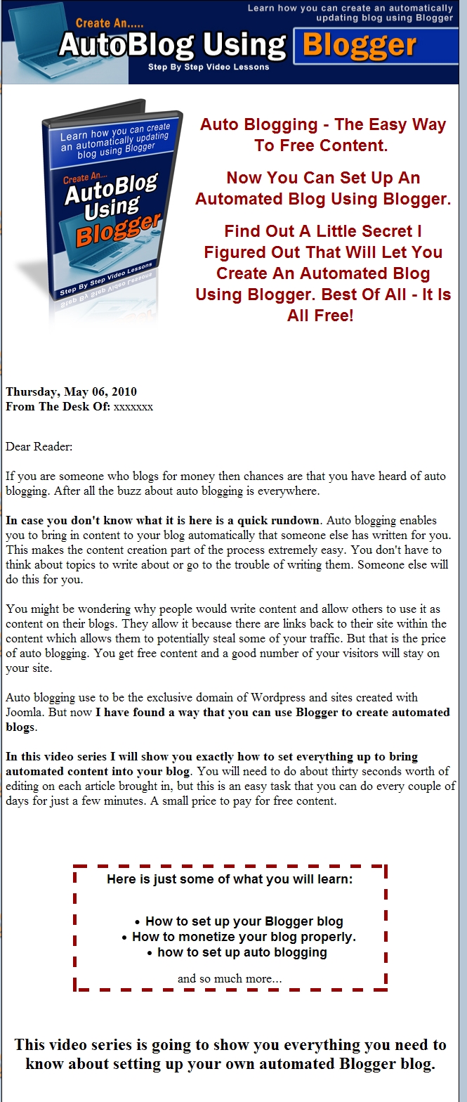Auto Blogging - the easy way to free content. Now you can set up an automated blog using Blogger. find out a little secret i figured out that will let you create an automated blog using blogger. best of all - it is all free!
